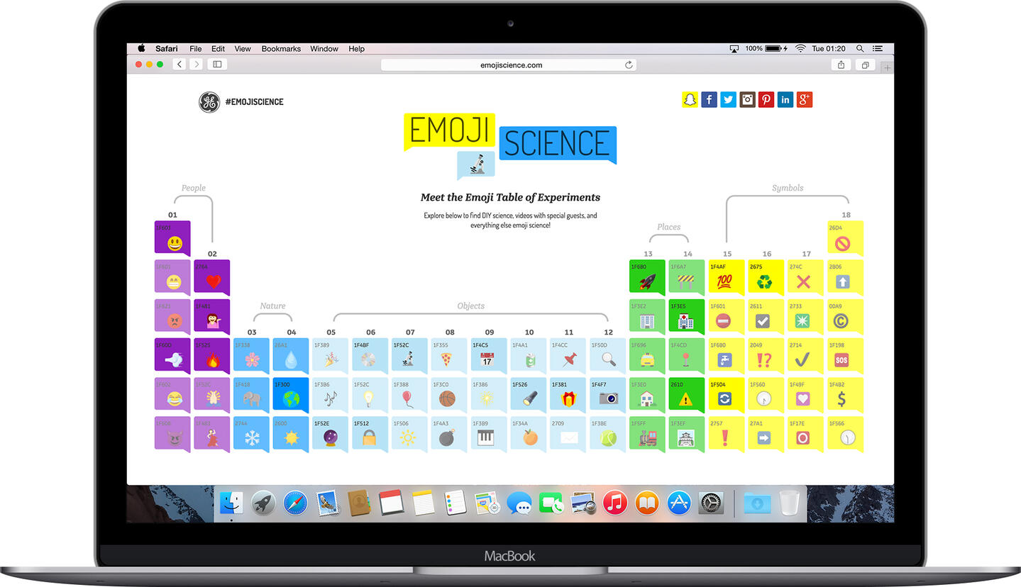 In 2014, GE tasked our team at VaynerMedia with the objective of making science more accessible to millennials through social media. After much deliberation, we decided to harness one of the most basic forms of communication ever invented: emoji.The 'Emoji Table of Experiments' was born.